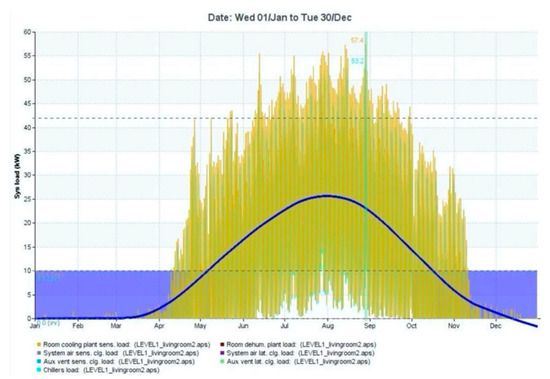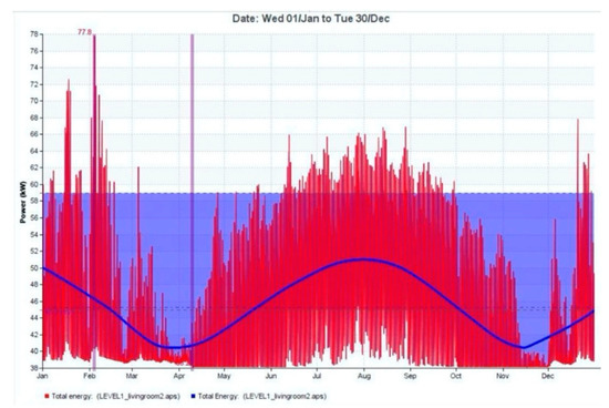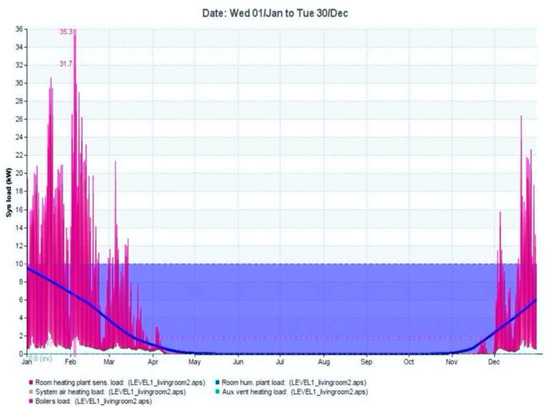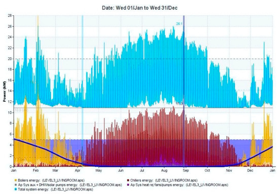 From this point of view, the CIBSE AM 11—Building performance modelling (2015) provides guidance on the use of detailed thermal models. According to what is stated in the norms of BS EN 13786: 2007, it has been assumed that if the heat gain to a space is below 35 W/m2, there is unlikely to be a need for mechanical cooling [42,43]. It should be noted that state-of-the-art building systems and the implementation of effective retrofit interventions are encouraged in the first instance to reduce requirements before costlier and shorter life span systems are installed. It is noteworthy that this approach improves the cost-effectiveness of energy savings and increases the efficiency of buildings for the duration of their operational lives [44,45,46]. Furthermore, a recent study suggested by CIBSE Guide F—Energy efficiency in buildings in 2030 gives further detail on low-energy design principles [47]. However, the more that is known about the manner of both applicable and feasible design strategies which are put forward, the more an effective solution is prioritized. Hence, more appropriate energy demand calculations must be undertaken throughout the early design stages of retrofitting scenarios to quantify these measures.