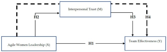 Interpersonal vertical trust is an underlying mechanism that transmits the relationship between agile women leadership and team effectiveness. This relationship, in our view, can be explained precisely through interpersonal trust being an important explanatory factor for this relationship. Therefore, in this study, we hypothesized that trust in the leader is a mediator of the relationship between agile women leadership and team effectiveness. The hypothesis, therefore, is as follows: