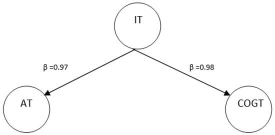 Moreover, T was estimated through a secondary factor analysis yielding two latent constructs: affect-based trust and cognition-based trust. Figure 3 and Table 4 show the standardized regression loadings of those constructs.