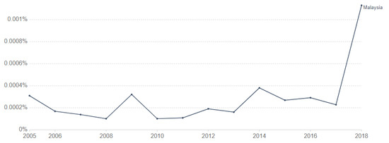 Figure 3 analyzes the direct economic loss as a share of GDP, 2005 to 2018, in Malaysia. It is seen that the graph is moving down from 2005 until 2008. Then, the economic loss rises in 2009 with 0.0003% and back to moving down in 2010 until 2013. The economic loss as a share of GDP, 2005 to 2018, in Malaysia in the year 2014 and the rise up to the peak in 2018 with more than 0.001% can also be observed. Figure 4 shows the disaster risk reduction progress in the world.
