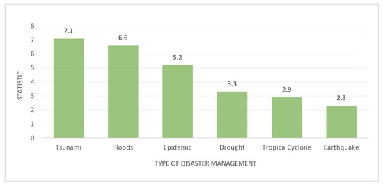 Floods occurred spontaneously because of consistent, substantial precipitation, high floods and elevated tides, and human action such as impeding of channels or disturbance of drainage, unlawful development, over-exploitation, and so forth. As [18] stated, floods have achieved 40–50% of a wide range of calamities causing deaths globally. Similarly, floods are catastrophic events that have ruled from the 1880s until now and affect different populaces in Malaysia. The flood number periodically rises in every annual occurrence in Malaysia. Figure 6 shows natural disasters in statistics in Malaysia in 2020.