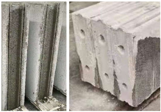 Foamed concrete has excellent properties, such as light weight, high strength, class A fire prevention, heat insulation, sound insulation, and sound absorption, but it also has problems, such as high water absorption and poor waterproofness [4,5]. As a lightweight thermal insulation board, foam concrete has been studied and applied in many aspects, such as exterior wall thermal insulation and floor and floor thermal insulation, but less research and application has been conducted in prefabricated buildings [6]. Foamed ceramic plate is a lightweight plate-shaped ceramic product with thermal insulation performance, which is made of industrial solid waste or other mineral raw materials as the main raw material, mixed with a small amount of admixtures and foaming agents, and baked and foamed at high temperatures. It has the properties of light weight, high strength, thermal insulation, sound insulation, fire resistance, and moisture resistance [7,8], but its high production cost limits its wide application in the construction field. Because foamed ceramics have the advantages of high fire resistance, low water absorption, and good stability, the foamed concrete has natural advantages in energy saving, heat preservation, heat insulation, light weight, fire resistance, and compounding with other materials [9]. Facing the special requirements of prefabricated buildings, the excellent properties of these two materials can be used to exert the synergistic effects of different materials. Additionally, the foamed concrete slurry can be poured between two foamed ceramic plates. Through the bonding properties of foamed concrete cementitious materials, panels are bonded into a whole to prepare non-load-bearing lightweight composite wall panels that can be used in prefabricated buildings. This preparation method does not require additional connection or reinforcement of tensioning parts, which avoids the thermal bridge caused by tension parts, but it also requires sufficient bonding strength between the two different materials to ensure the integrity of the wallboard [10,11]. In practical applications, foam concrete has some problems. For example, it has large shrinkage deformation and poor crack resistance. The interface bond has a high risk of failure, which affects the safety of the composite wallboard.