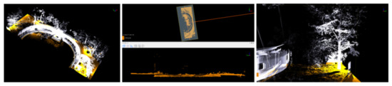 Secondly, point cloud registration: automatic registration processing was performed, and the software automatically extracted feature points according to the coincidence rate of each site. The ICP (Iterative Closest Point) algorithm was used to accurately splice adjacent sites and minimize the error function value. The maximum error of this point cloud splicing was 11.1 mm, and the midpoint error was 9.7 mm, where the registration results allowed a midpoint error ≤ 15 mm, which can be used as the baseline for subsequent studies.