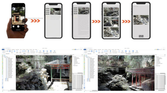Large-scale digitalization and informatization, which are being improved day by day, have gradually developed from a “digital city” to a “smart city”, which brings about important opportunities for the digital preservation of cultural heritage. On the one hand, the focus of research and practice on heritage information services needs to expand from the construction of heritage data platforms to a more inclusive and comprehensive heritage knowledge service system to better coordinate the relationship between heritage conservation and urban development. On the other hand, heritage information services need to dialectically look at the issue of standardization and individualization, paying attention to the construction of relevant standards and norms for digital heritage information, while fully considering the individualization, localization, and technological innovation of heritage information service platforms and exploring heritage information service models and data structures. In addition, the heritage information service platform needs to (i) highlight the main stakeholders; (ii) to strengthen participation and contributions to the collection, organization, and dissemination of information on heritage sites; and (iii) to promote the continuation and development of the heritage value of urban historical landscape. Figure 14 shows the development and application route of full-cycle landscape data from Chinese royal gardens. Figure 15 shows the real-time cloud interaction between mobile and computer information for users with different needs.