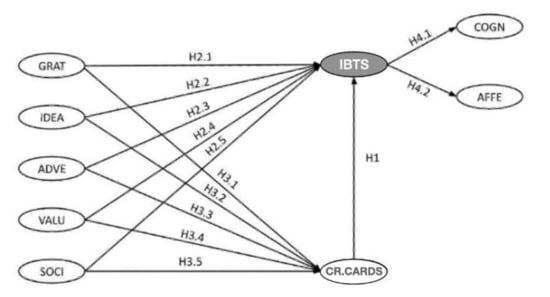 This investigation seeks to determine the relationship between credit card use as a trigger for the impulsive buying of fast fashion products during the COVID-19 pandemic, as well as the relationship between credit card use and hedonic motivations (see Section 2.3 for a description of the terms used within hypotheses). Based on the analyzed theory and according to the hypotheses formulated, the theoretical model is presented in Figure 1.