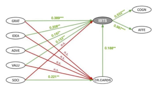 It should be noted that the values of the variance obtained were 58.16%, 58.78%, and 57.21% for the COGN, AFFE, and CREDIT CARD scales, respectively. Although these values are slightly below the established limit of 60%, according to Hair et al. [73] in the field of social sciences, such slightly lower values can be admitted. Therefore, these values validate the dimensionality analysis.