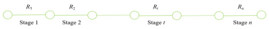From Equation (1), the reliability of the whole system in stage was obtained as follows: