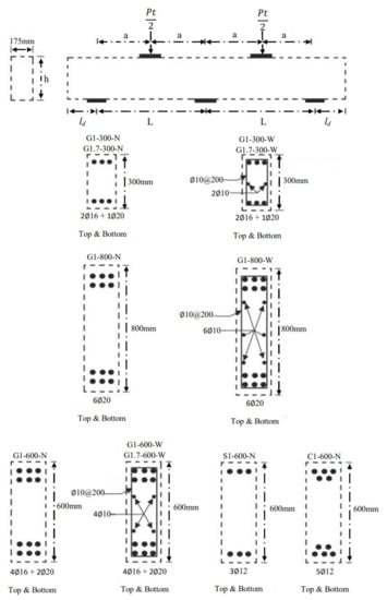 The application of deep-reinforced concrete beams in the construction sector has drawn the attention of many researchers and members of the construction industries, because this type of beam has been widely used to improve the performance of high-rise buildings, offshore structures, shear walls, and bridges due to its high shear resistance [1,2,3]. However, it may cause steel reinforcement rebars to corrode if the beam is exposed to harsh environmental conditions. Considering the use of sustainable materials for the construction sector has been proposed by researchers [4,5,6,7,8,9,10,11,12,13,14,15,16,17,18,19,20,21,22,23,24,25,26,27], and the replacement of steel rebars with FRP rebars has been taken into account as a viable solution to enhance the corrosion resistance of deep-reinforced concrete beams [4,5,28,29,30,31,32,33].