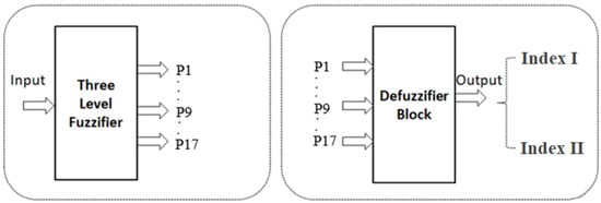 The resulting values of indices Index I and Index II were estimated using the fuzzy control analysis and were compared with the numerically estimated values using Equation (1), as presented in Table 14 below. Using Pearson’s Chi-squared test, an analysis was carried out to determine if there was a significant difference between the two sets of results (analytical and fuzzy logic results). The two assumptions to perform the Pearson’s Chi-squared test were that the tested variables should be categorical data and that there should be two or more independent groups. In this case, there were two sets of data, and they were categorical. The null hypothesis in this case was that “there is no difference between the two sets of results obtained from the analytical analysis and the fuzzy logic analysis”. The alternative hypothesis was that “There is a difference between the results obtained from the analytical analysis and the fuzzy logic analysis”.