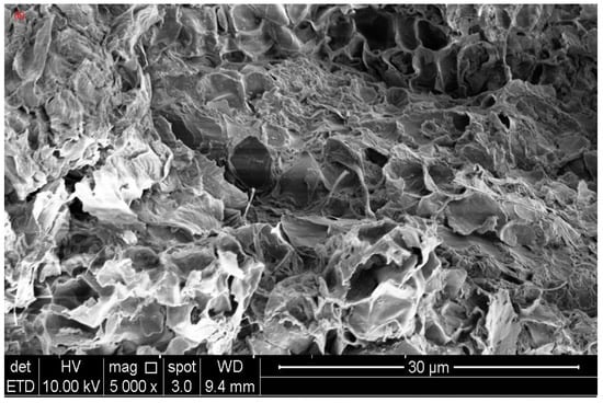 The SEM micrograph of banana peel biochar before and after the adsorption process was recorded at the resolution of ×5000 magnification using 30 µm particle sizes. It was found that the morphology of the BPB before adsorption (Figure 2a) was different from banana peel biochars after adsorption of RB5 (Figure 2b). In Figure 2a, the micrograph revealed the rough and porous surface of the banana peel biochar and it is due to the presence of lignin, pectin, and vicious compounds [61]. Banana peel biochar after adsorption with RB5 can be observed with a rough and irregular surface because of the chemical alteration of the surface. Due to the dye uptake, lignin was oxidized and produced hydroxyl, carbonyl, and carboxyl groups which enhanced lignin solubility [62]. Functional groups present on the surface are responsible for improving the adsorption process through electrostatic interactions and chemisorption-based processes.