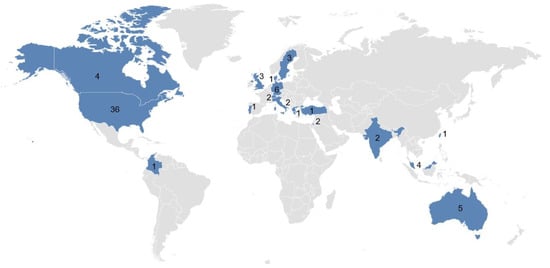 World map showing the geographic distribution of the analyzed studies in the literature review.