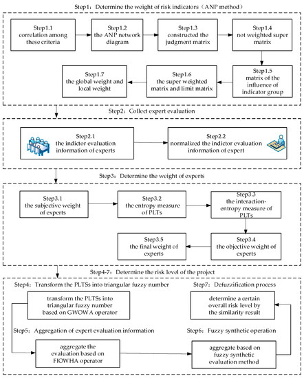 The rest of the study is as follows. Section 2 reviews the PLTSs, TFN, and FSE methods, which will be used in this paper. Section 3 analyzes the risk factors, and a comprehensive indicator system for the hybrid offshore wind–solar PV power generation projects is developed. A decision framework of the risk assessment for the hybrid offshore wind–solar PV power generation projects is presented in Section 4. A case study, sensitivity analysis, and comparative analysis are presented in Section 5. We present a discussion and offer corresponding risks countermeasures in Section 6. Finally, Section 7 concludes this paper.