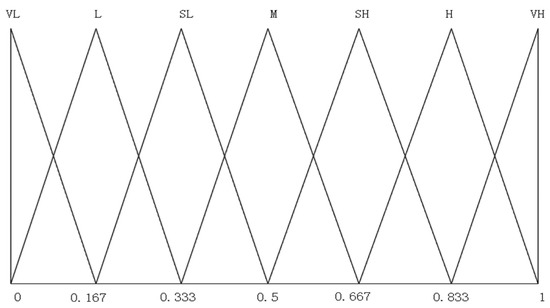 The multiple-attribute group decision-making (MAGDM) problem is a sub-discipline of operations research. The MAGDM theory has received extensive attention and quite a few achievements have been presented in the past decades. Because of the variety of risk factors, it is clear that the risk assessment of hybrid offshore wind–solar PV power generation projects is a typical MAGDM problem. Two main reasons for the uncertainty of decision information were determined. Firstly, risk assessment of a project is universally conducted in the planning and feasibility study stage. However, the risk assessment is only an estimate of what will happen in the future. Therefore, there is uncertainty in the process of risk assessment. Secondly, the judgements and evaluations are entirely dependent on the experience and knowledge of DMs in the risk assessment. However, it is clear that DMs are not entirely rational, so fuzziness exists. Therefore, the MAGDM method is often an effective tool for these problems with imperfect, vague, and imprecise information, which plays a significant role in the reasonableness and accuracy of risk assessment. In 1965, Zadeh [21] proposed the concept of fuzzy sets to express uncertainty and fuzzy information. Compared with specific numbers, fuzzy sets can express the uncertainty of objective things and the fuzziness of subjective cognition better and have been widely used to solve these problems. On this basis, some scholars have developed the fuzzy sets from different angles and put forward its extended forms including type-2 fuzzy sets [22], intuitionistic fuzzy sets [23], interval fuzzy sets [23], hesitant fuzzy sets [24], hesitant fuzzy language terms [25], and PLTSs etc. [26]. The probabilistic linguistic term sets (PLTSs) are introduced in this paper to describe the risk assessment information. PLTSs allow experts to express preferences with multiple different linguistic terms and give corresponding probability information for each term. For example, when assessing the market risk of hybrid offshore wind–solar PV power generation projects, an expert may express that he/she is 60% sure that it is slightly high (), and 40% sure that it is medium (); this evaluation information can be expressed in the form of PLTS . It is obvious that PLTS can better retain the original evaluation information. In addition, in terms of expert evaluation information aggregation, PLTSs are transformed into triangular fuzzy numbers based on a generalized weighted ordered weighted average (GWOWA) operator. The triangular fuzzy number proposed by Zadeh [21] has been widely used in MAGDM problems for the purpose of making decisions more in line with a realistic decision environment [10]. An inexact interval-valued triangular fuzzy based multi-attribute preference framework was conducted by Ren et al. [27]. It mainly takes vagueness in parameter values into account. Some hesitant triangular fuzzy aggregation operators were proposed by Zhao et al. [28]. Additionally, they investigated their application to MAGDM problems, and an illustrative example was used to show the validity of these operators. It can be seen clearly from the above literature that the TFN is an effective tool for dealing with the MAGDM problem with uncertain information and relatively simple calculation process well. Therefore, the triangle fuzzy number was introduced by many researchers to solve risk assessment and performance analysis. In addition, some scholars have studied the methods of formal transformation [20,29], which play an important role in MAGDM.