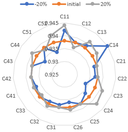 Profitability risk (C14): The profitability of a project refers to the ability to increase the value of the funds invested in the project, which is easily affected by interest rate changes, inflation, capital turnover, and other problems, leading to the reduction in the investment benefit of the enterprise. The profitability risk of hybrid offshore wind–solar PV power generation projects should be paid more attention under the background of government subsidy withdrawal. In order to conform to reality, considering the time value of capital and reflecting the economic effect of the project, the net present value is usually the main factor, supplemented by internal rate of return and dynamic payback period, and the profitability risk of the project is evaluated.