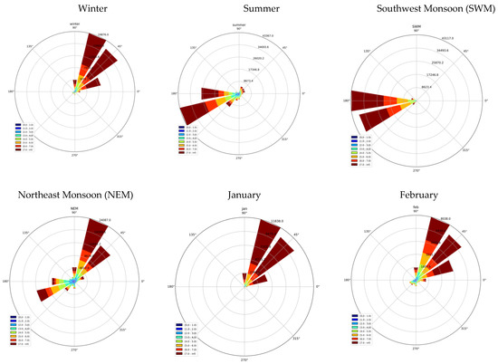 - The annual mean wind speed was better at about 7.51 m/s, and the wind rose diagram showed the maximum wind speed prediction in the southwest monsoon and northeast monsoon seasons.