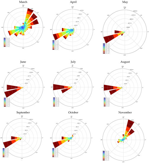 A wind rose diagram depends on the wind direction where the wind turbine has to face the wind speed to extract maximum wind power. Therefore, the wind speed direction for every hour, day, week, month, and year are essential to analyze the wind characteristics. Winds directions are classified as 0 degrees to 360 degrees and are divided into either part (N, NE, E, SE, S, SW, W, and NW).