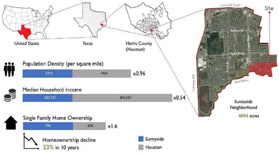 - Texas Low Income Housing Information Service, Sunnyside Neighborhood Plan: A Preliminary Draft by Houston’s Sunnyside Neighborhood. Houston’s Sunnyside Neighborhood, 2016. Available online: https://txlihis.files.wordpress.com/2016/05/sunnyside-plan1.pdf (accessed on 19 December 2021).