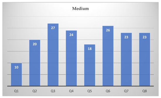 Distribution of the “medium” responses in the assessments of 8 analyzed problems.