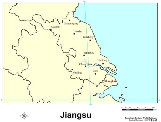 Layout of Jiangsu airports (Basemap reproduced from https://www.tianditu.gov.cn/ (accessed on 20 May 2019)).