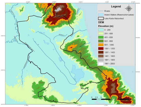 - Tzabiras, J.; Vasiliades, L.; Sidiropoulos, P.; Loukas, A.; Mylopoulos, N. Evaluation of Water Resources Management Strategies to Overturn Climate Change Impacts on Lake Karla Watershed. Water Resour. Manag. 2016, 30, 5819–5844. [Google Scholar] [CrossRef]