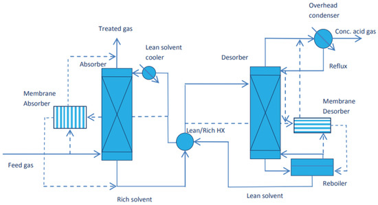 Simplified absorption and desorption processes that have the potential to be replaced with a membrane contactor system [73].