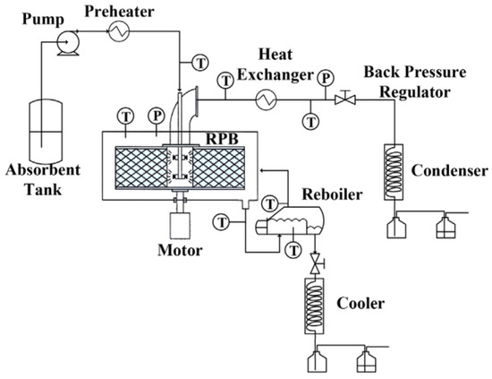 Experimental apparatus of the rotating packed bed for solvent regeneration [90].