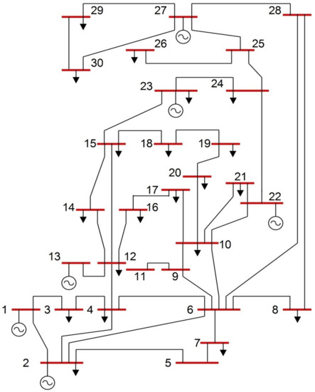 - IEEE 30 Bus System, Information Trust Institute, Illinois. Available online: https://icseg.iti.illinois.edu/ieee-30-bus-system/ (accessed on 11 March 2022).