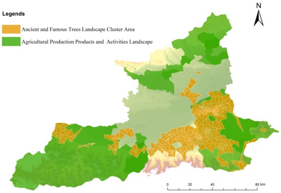 MacDonald and Jolliffe [1] defined the cultural rural tourism product as a combination of natural and historical landscape resources, such as traditions, heritage, arts, lifestyles, places, and values. On the basis of his predecessors, Włodarczyk-Marciniak et al. [20] delineated the types of rural cultural landscapes. Obviously, they obtained similar results for their different type classification. Ringer [3] has said that it is encouraging to see research in which theories and ideas from cultural geography are discussed within the context of tourism. Classifying the cultural landscape was the first and most critical task of this study and provided an important foundation for the research that followed. Considering the rural tourism context, this study divided the rural cultural landscape as follows (see Table 1).