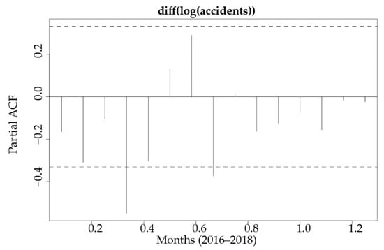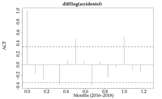 Different approaches have been used to predict changes in traffic accidents: normal linear regression techniques [9], exponential regression techniques [11], Box–Jenkins models and Auto Regressive Integrated Moving Average (ARIMA) [8,10,12]. According to Lavrenz et al. [14], the ARIMA model has been used in many papers modelling time series in road safety research over the last decade [15,16,17,18,19].