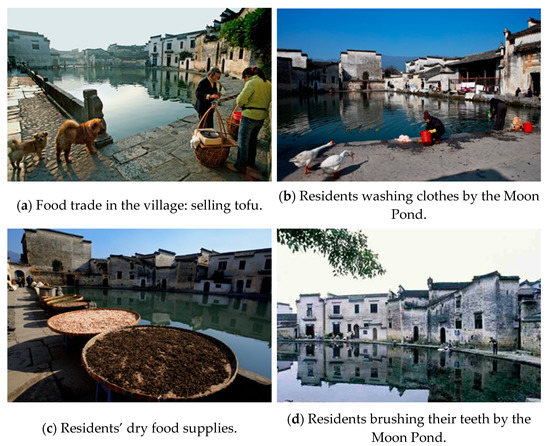 The former lifestyle of Hongcun residents. Source: Jianping Zhang. Note: (a) was taken on 16 October 2009; (b,c) were taken on 10 January 2009; (d) was taken on 26 October 1999.