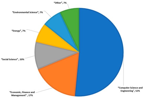 As Figure 6 shows, publications on SC criteria cover six main areas: computer science and engineering; economy, finance, and management; social science; energy; environmental sciences and social sciences; and arts and humanities. However, publications in computer science and engineering appear to be most frequent, with 20 papers out of the total 51 papers analysed, while only one paper on the topic was published in the field of arts and humanities.