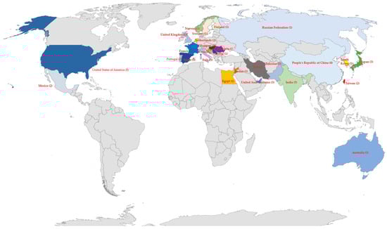 Geographic distribution of publications on SC criteria—the numbers of relevant publications identified and analyzed). Note: The papers under review include 51 relevant publications published in 2011–2019 and written by authors from 27 different countries: Sweden (1 publication), Taiwan (2), United Kingdom (3), Spain (9), Italy (3), Russian Federation (1), United Arab Emirates (3), United States of America (8), Croatia (1), Portugal (3), Pakistan (3), Japan (3), People’s Republic of China (4), India (5), Finland (1), Iran (2), Egypt (1), Australia (1), Serbia (1), Mexico (2), South Korea (1), France (1), Jordan (1), Norway (1), Romania (1), Netherlands (2), and Hungary (1).