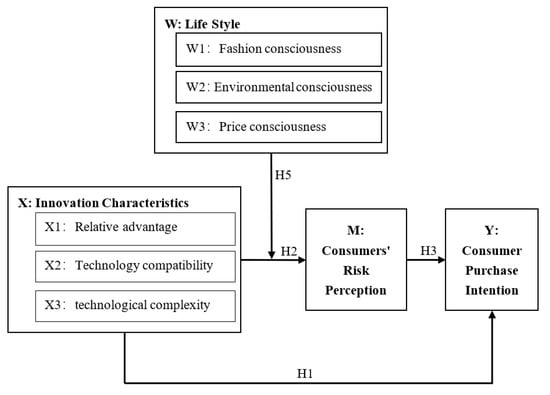 Based on the viewpoints analyzed above, a conceptual model was proposed, as shown in Figure 2, to explore how innovation characteristics and lifestyle affect consumers’ purchase intention.