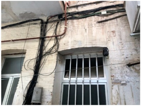 Fire-spread behaviour in a whole block with 13 different buildings is assessed with the use of physics-based models. This block includes dwellings that actually present substandard living conditions, presenting a higher fire risk mainly due to overcrowding, defective materials, hazardous uses of heating and cooking facilities or unsafe electrical connections (Figure 1). For example, once a fire breaks out, the burning of cables releases a high amount of dioxins, toxic and harmful gases [25].
