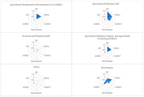 Note: Economic and population factors (EP), agricultural production (AP), the agricultural mechanization development level (AMDL), and the agricultural machinery industry and agricultural technology (AMIAT).