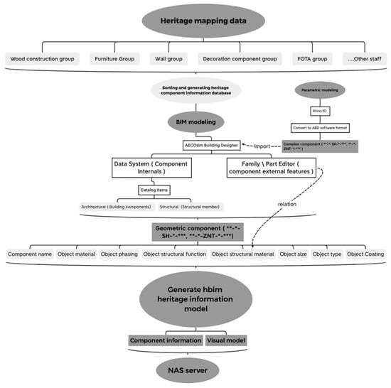 - Anyone should carry out HBIM activities on the ABD platform in strict accordance with general logic, rules, and operations to avoid the problems that the position of model components cannot be joined, overlapped, and assembled, as well as the issues of model information mismatch and model information loss. In particular, many internal components and construction methods in the architectural heritage do not have standardised production and assembly procedures, which leads to different forms of many architectural structures and spaces. Therefore, if they are not operated according to the specified process, the subsequent detection, renewal, and delivery work will often be affected.