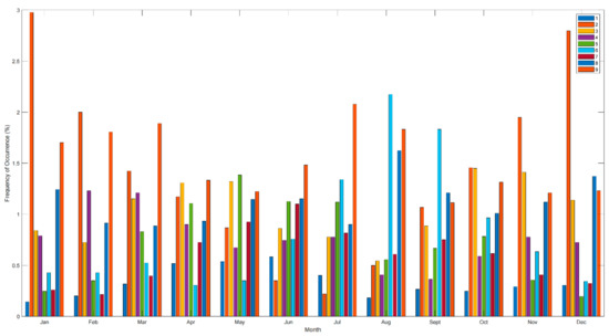 - Philipp, A.; Bartholy, J.; Beck, C.; Erpicum, M.; Esteban, P.; Fettweis, X.; Huth, R.; James, P.; Jourdain, S.; Kreienkamp, F.; et al. Cost733cat—A database of weather and circulation type classifications. Phys. Chem. Earth Parts A/B/C 2010, 35, 360–373. [Google Scholar] [CrossRef]