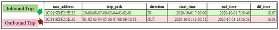 For example, the MAC address shown in Figure 8 (lines 1–9) can be used to construct a trip with the following information:
