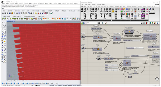 The origin of parametric design can be traced back to 1962, when Dr. Ivan Sutherland of MIT published his Sketchpad paper, which first introduced the concept of computer-aided design by modifying the parameter values to obtain different design components through the designed interface; later on, with the emergence of surface and solid modeling software, and even later, from unconventional Bezier curves to parametric modeling software, computers started to become a tool to assist designers [17,18]. However, parametric design functions were incorporated into commercial computer-aided design software decades later, and by the 1980s, many designers tried to use parametric features to develop their designs and conduct related application research [19]. Most of the parametric software exists in the form of plug-ins, and depending on the interface operation, it can be divided into programming language and visual programming language. It is much more intuitive than programming language and more acceptable to students. With the advanced technological capacity to compute, calculate and simulate, contemporary landscape architecture should no longer be directed only towards aesthetic and functional aspects but should also consider habitability, self-sufficiency and sustainability [20,21]. Unlike previous landscape architecture designs, which were mainly built on subjective intuitive judgment, traditional aesthetics and institutional experience, the parametric design method is based on a set of interactive rules and computational mechanisms, and through the designer’s translation of design concepts, the rules and correlations of relevant parameters are defined as the basis for landscape architecture design changes. Not only can the geometry of the scheme be produced, evaluated and adjusted in real time, but the repetitive and large amount of data can be also processed in real time by a computer at any stage, allowing the designer to fully integrate their knowledge of environmental factors in the design concept and construct the corresponding visual model, provide the relevant area calculation and material costing in the shortest possible time [22]. Such a dynamic feedback mechanism and landscape architecture design process not only helps the design unit to integrate the subjective and objective design conditions but also provides control over the operating costs and the feasibility and accuracy of future construction drawings at the early stage of design, inspiring students to apply in the landscape architecture workplace in the future (As shown in Figure 4).
