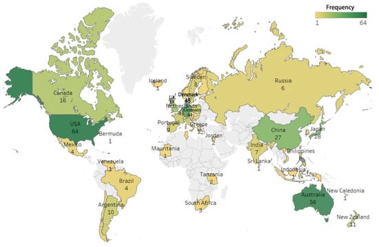 Country/region distribution map based on frequency.
