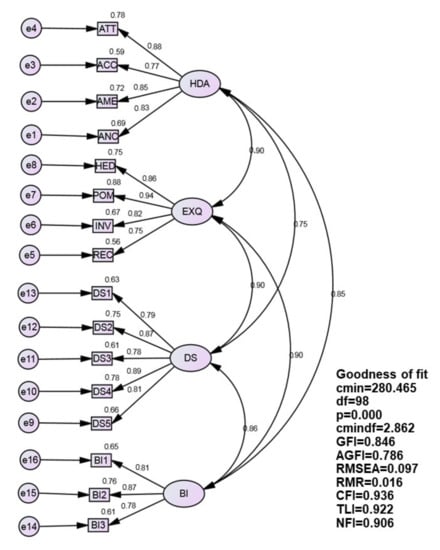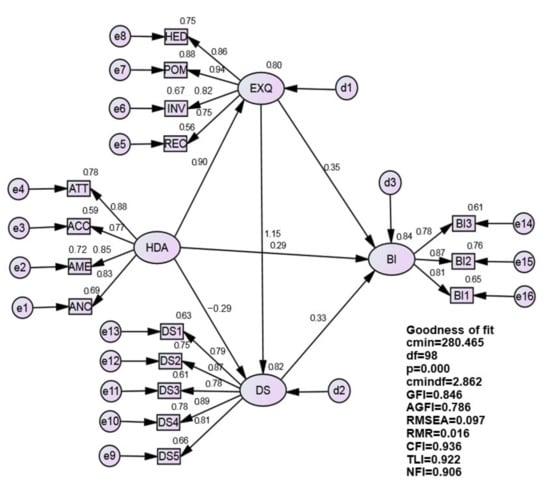Chicago/Turabian StyleBattour, Mohamed, Nur Aulia Noviyani, Ririn Tri Ratnasari, Mohamed Aboelmaged, and Riyad Eid. 2022. "The Impact of HDA, Experience Quality, and Satisfaction on Behavioral Intention: Empirical Evidence from West Sumatra Province, Indonesia" Sustainability 14, no. 8: 4674. https://doi.org/10.3390/su14084674