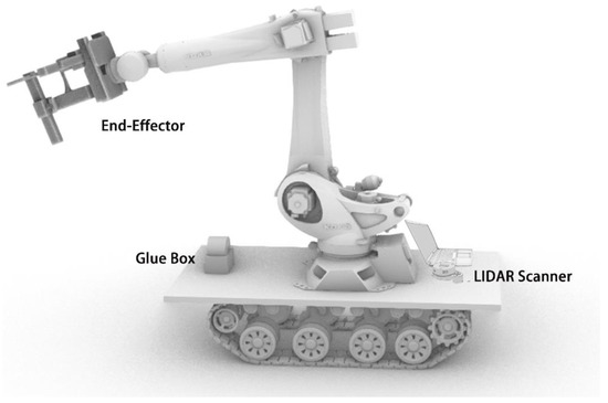 For the future of robotic wood construction on site, the following is also clear from the experiments: First, the experimental simulation of the construction site environment is relatively simple, but the real construction environment will be more complex and need to deal with the uncertainty of the unexpected situation so that the robot can deal with the complex situation of the construction site, which will be the focus of subsequent research. Secondly, for the positioning method using LIDAR, the errors do not accumulate because the obtained point clouds are matched in relation to the reference point clouds obtained from the same initial values; however, this location method requires the surroundings to remain largely unchanged and does not exactly match the changing environment of the construction site [30]. Therefore, an attempt can be made to scan only the building components, instead of scanning the environment. However, its ability to provide the desired accuracy is debatable [24]. Third, the research object of this experiment was a wooden structure building, and the robot operating system and its end effector can complete the nailing and glue application connection method, but different building structures have different construction methods, so it is necessary to consider the adaptability between the robot operation and robot end effector under different construction methods, which means that the exploitation of the end effector is equally important for the future development of robotic construction.