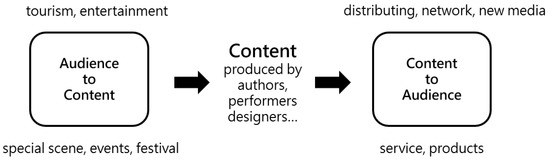 The development of CCIs is of academic significance, and most studies of CCIs focused on the following aspects. First of all, studies that emphasized the innovation capacity of CCIs, which area of research analyzes the role of CCIs in affecting the performance of an economy’s innovation [13,14], active innovation [15,16], product innovation [17,18], firm innovation [19,20], and industrial innovation [13]. Second, the management of CCIs has also been receiving attention in academia. A debate has been positioned on whether cultural and creative industrial management “differs” from other forms of management. For many, because of the nature of their products, CCIs raise different types of managing and organizing challenges; it is because managing CCIs creative content is different from that of manufacturing products, requiring more flexibility, and the outsourcing characteristics of CCIs also create different operating and managing challenges [21,22]. Third, CCIs are considered to be a source of potential benefits of transforming culture into capital for the whole economy, affecting the social and cultural aspects of people’s lives [19]; therefore, many scholars proposed policy studies from a theoretical perspective. Various studies on cultural and creative industrial policies believe the orientation of those industries are an important policy for upgrading the national economy [23,24]. As a result, some research analyzed national and civic cultures, and creative industry policies are common research topics [25,26,27]. Lastly, the challenges of cultural policies are also a research area that has received considerable attention [28,29].
