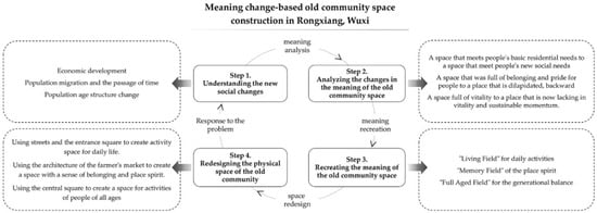 Conceptual framework for space redesign of the old community in Rongxiang based on meaning change.