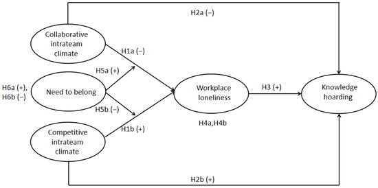 Team members are often motivated to compete and collaborate simultaneously [31,32]. Similarly, George found in a study on the necessity of studying the influence of individuals and groups on creativity that, on the one hand, the motivation to meet relevant needs may lead to a collaborative team climate. On the other hand, individual performance rewards encourage team members to compete and create a competitive team atmosphere [33,34]. Unfortunately, the impact (good or bad) of such intrateam cooperation and competition on the creativity of individual team members is still an empirical problem [32]. This paper predicts that a collaborative and competitive intrateam climate will affect workplace loneliness and knowledge hoarding to varying degrees, respectively, in the era of COVID-19.