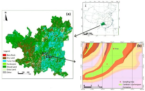 - Sun, J.; Wang, S.; Zhou, D.; Liu, X.; Ji, H. Insoluble residues of carbonate rocks as source manterial for red weathering crusts in Karst regions of GuiZhou Province, China. Acta Mineral. Sin. 2002, 22, 235–242. [Google Scholar]
