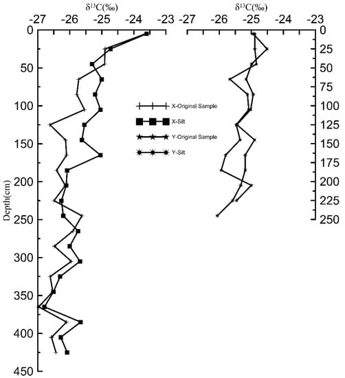 δ13CSOC distribution characteristics of original samples and silt samples.