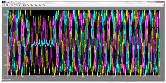 Figure 10 is the performance estimation depiction of series voltage: sag/swell. Here, there is an occurrence of some oscillation all through the transmission process. The oscillation is represented in a varied range of colors such that the oscillations and deviations of voltage flow could easily be identified from this variation.