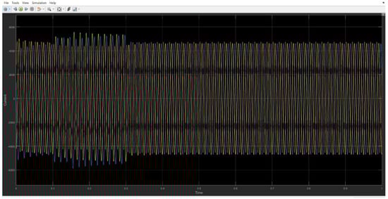 The grid voltage analysis is denoted in Figure 12. The oscillation is represented in a varied range of colors such that the oscillations and deviations of voltage flow could easily be identified from this variation. However, in this, the fluctuation is eradicated and the grid voltage is maintained without any oscillations during transmission. In this, the fluctuation of power is eliminated by maintaining the voltage power.