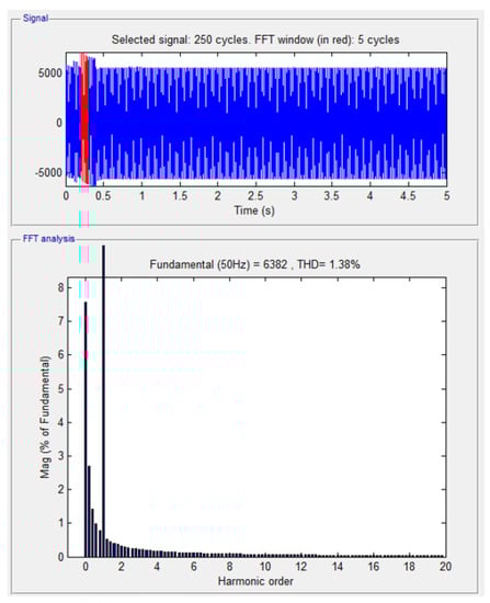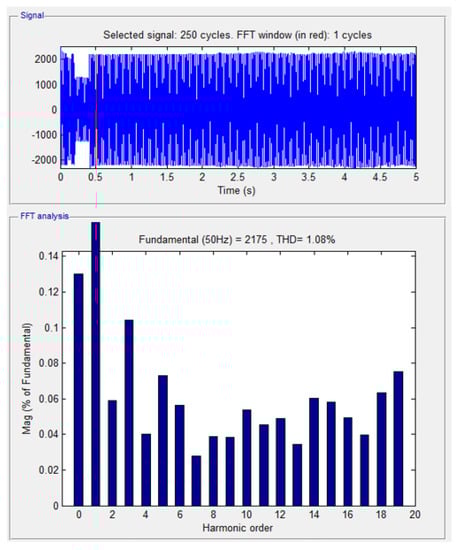Waveforms of grid voltage THD with a start time of 0.5 s.
